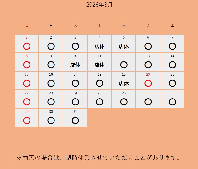 3月の営業スケジュール